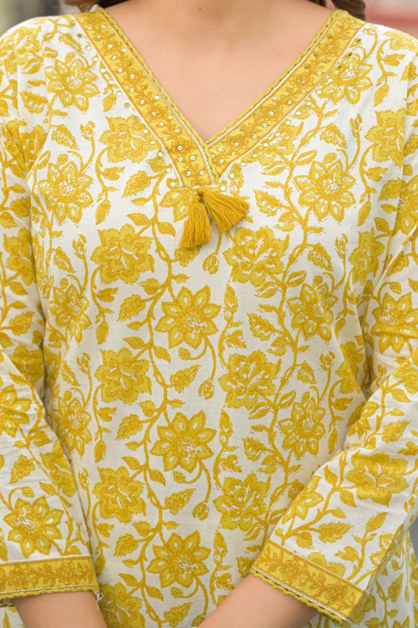 The kurta is adorned with graceful floral prints, giving it a fresh and feminine look, while the handcrafted tassel (latkan) detailing enhances the overall design with a stylish ethnic accent. Paired with a comfortable pant and a matching dupatta, this set offers a complete traditional ensemble suitable for festivals, casual gatherings, office wear, and family functions.